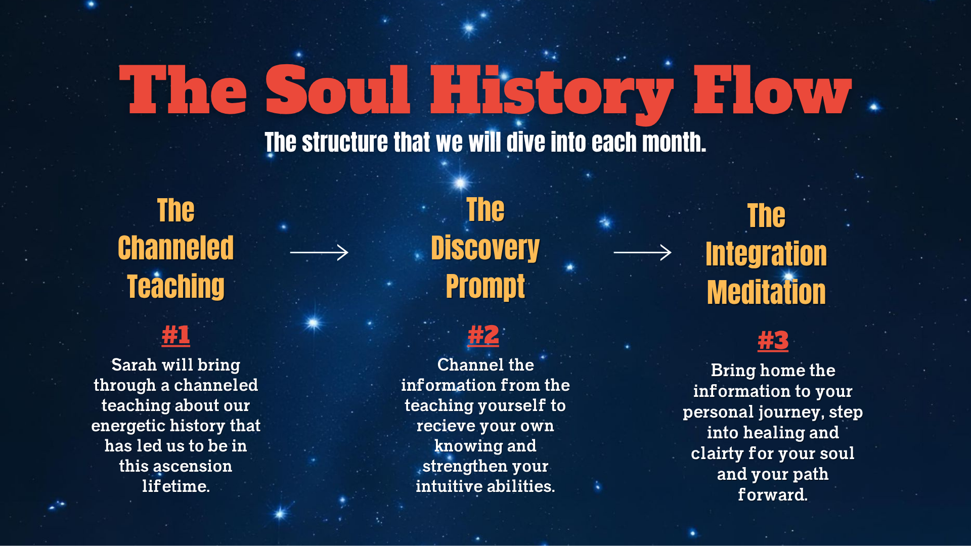 Live Channelings with Sarah are for Soul History members who are in the Masters program. They typically take place Mondays twice a month at 4pm EDT.
